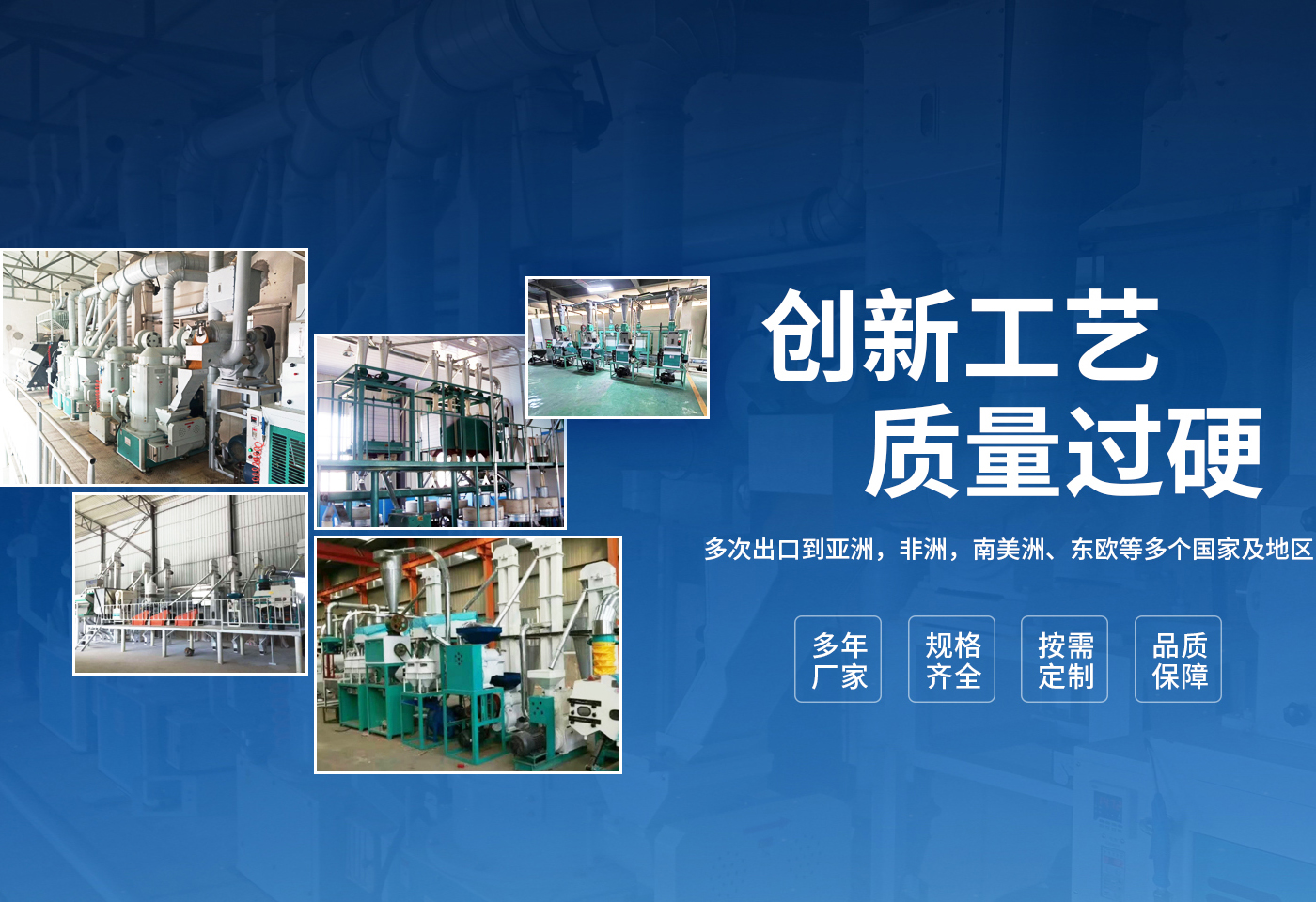 安陽市龍泰糧油機械有限公司是一個集糧油機械設計、生產制作、安裝于一體的設備制造商。公司坐落于農業生產基地河南省安陽市。多年來,公司與科研機構建立了廣泛的技術協作關系,精心致力于糧食加工設備的技術創新與應用,產品涵蓋整套碾米機械、小麥加工設備、玉米加工設備、雜糧加工設備,飼料加工及油脂設備等多個領域。可承接全套的交鑰匙工程,提供從資金預算,整體規劃,土建設計,設備制造、安裝、培訓,售后保障等一站式服務。  我公司擁有獨立自主進出口權及產品原產地注冊證書。產品除國內市場外,多次出口到,亞洲,非洲,南美洲、東歐等多個國家及地區。為國內外多家企業提供了工藝先進,技術過硬,節能的糧油設備,深得國內外客戶的一致好評。  公司以“質量就是生命”為宗旨,根據客戶不同需求,采用合理的技術方案,為客戶量身打造投資建廠方略,爭取實現高收益。公司生產過程嚴格按照合同和圖紙設計要求,生產符合設計標準、檢測標準、質量優良的產品供給客戶,并提供安裝、調試、培訓,保修期免費維修,終身免費咨詢等服務,確保設備在長期使用中穩定運行。  龍泰-愿與您一起攜手共創輝煌!